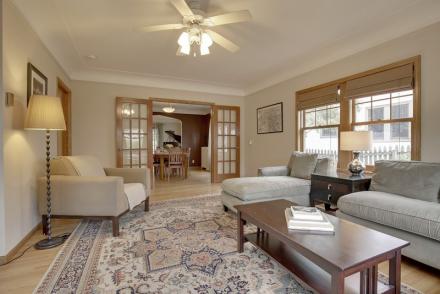 Stunning living & dining rooms offer sophisticated ambiance! Open, flowing spaces with a winning combination of authenticity and pristine updating, begin as the living room flows into the dining room with its exceptional built-ins and French doors that open to the spacious family room. Priceless!