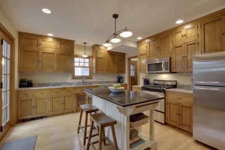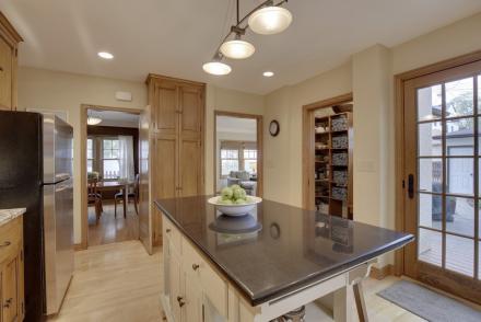 No expense was spared in renovating the eat-in kitchen including floor to ceiling custom cabinetry, stunning island & breakfast bar, granite countertops, recessed lighting, high end appliances, a clever combination pantry/mudroom & more!