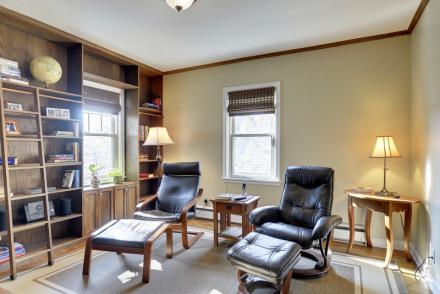 Stunning living & dining rooms offer sophisticated ambiance. Open, flowing spaces offer a winning combination of authenticity and updating. Distinctive details include dramatic high ceilings, architectural arches, natural & enameled woodwork, charming paned windows & hardwood floors on two levels