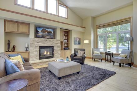 You’ll love the expansive wall of windows that offers luminous natural light & makes an architectural statement with details including the custom Stone, gas fireplace surrounded by gorgeous built-ins &media center