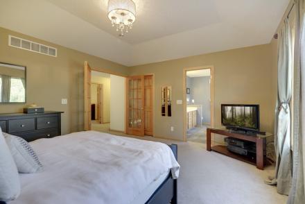 Sophisticated design & exceptional craftsmanship create your personal refuge! French doors lead to the Master Suite, which is very private and offers tree-top views of the premier lot. Fabulous & spacious Master bath offers jetted tub, a walk-in shower, double sinks, ample countertops, built-ins & tile. Very relaxing. Spacious, walk-in closet as well