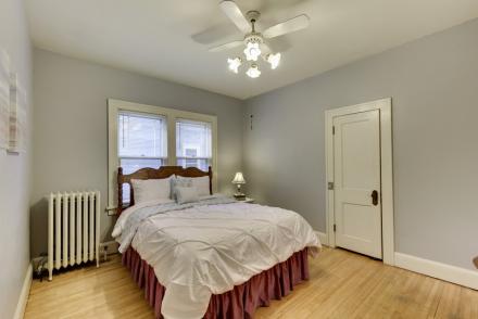 Two spacious bedrooms on the main level offer Craftsman detail & dramatic 9 foot ceilings