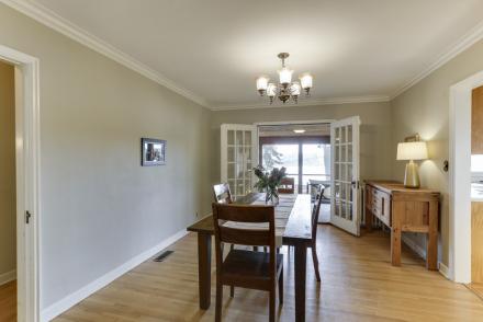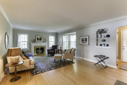 Classic living & dining rooms offer sophisticated ambiance with French doors to the charming porch!