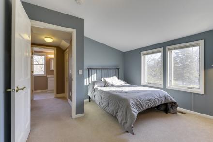 Two bedrooms, a full bath and ample closets on the upper level, one bedroom/den and a ¾ bath share space with a open concept dining room, living room and kitchen on the main level.