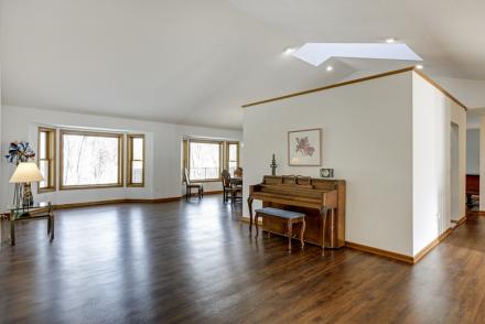 The open, flowing floor plan offers high impact visuals including soaring ceilings, skylight, desirable angles & reflections of light throughout. You'll love the expansive wall of windows that offers luminous natural light & makes an architectural statement