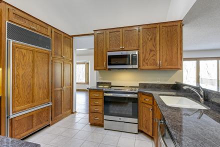 Fabulous kitchen offers custom cabinetry, granite countertops & breakfast bar, recessed lighting, high-end stainless steel appliances & more. Perfect for entertaining & everyday living