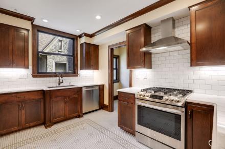 No expense was spared in the spacious, renovated eat-in kitchen with custom cabinetry, Quartz countertops, custom tile, high-end appliances, heated, custom tile floor & much more. A great space for spending time together